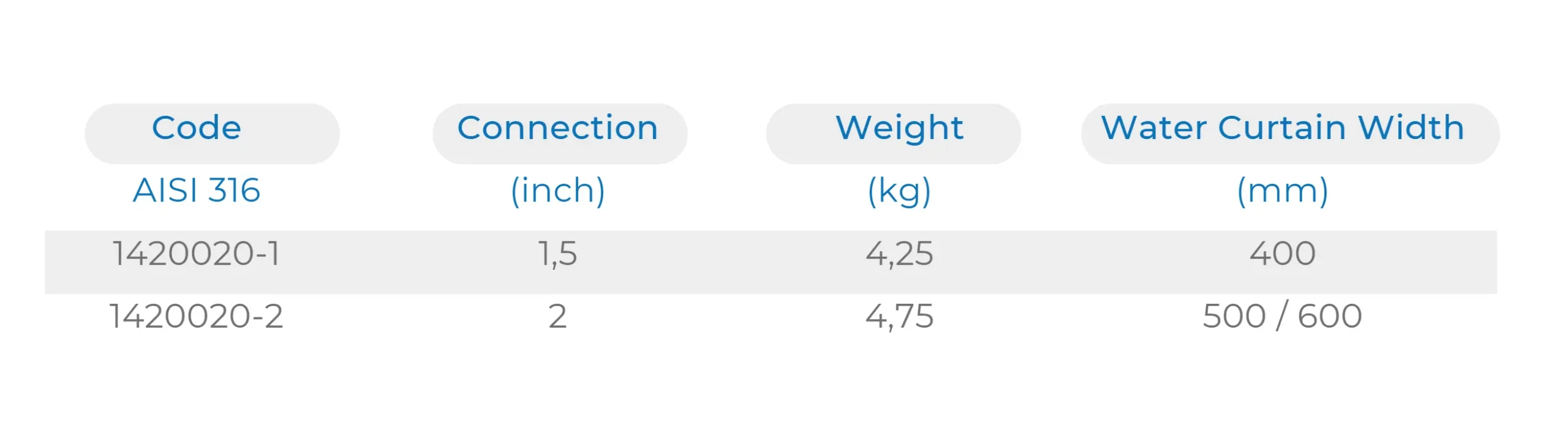 Made of AISI 316 stainless steel with two connections (1.5” and 2”) for Water Curtains.