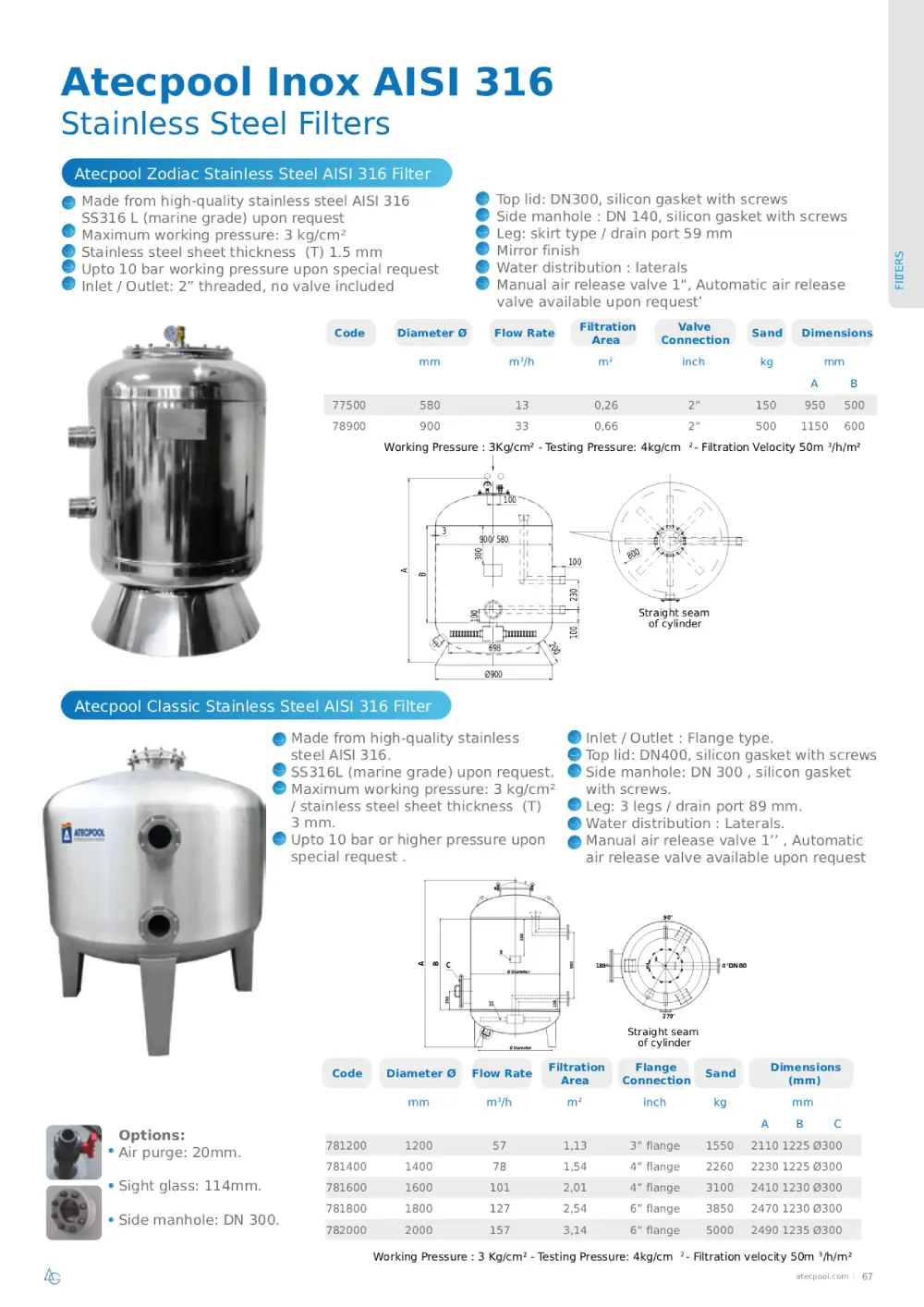 - Maximum working pressure: 3 kg/cm² / stainless steel sheet thickness (T)3 mm.