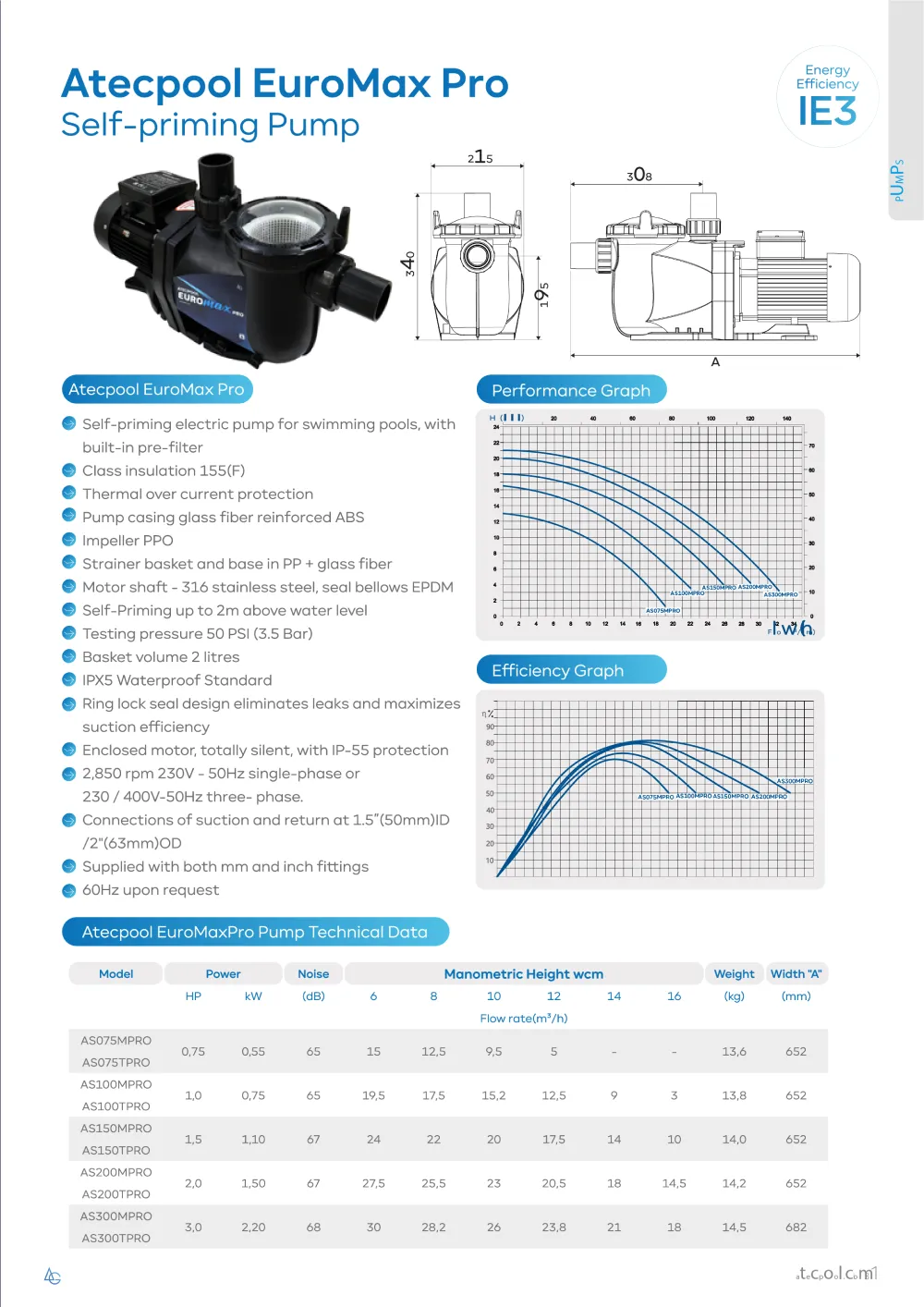 - 2,850 rpm 230V – 50Hz single-phase or 230 / 400V-50Hz three-phase.