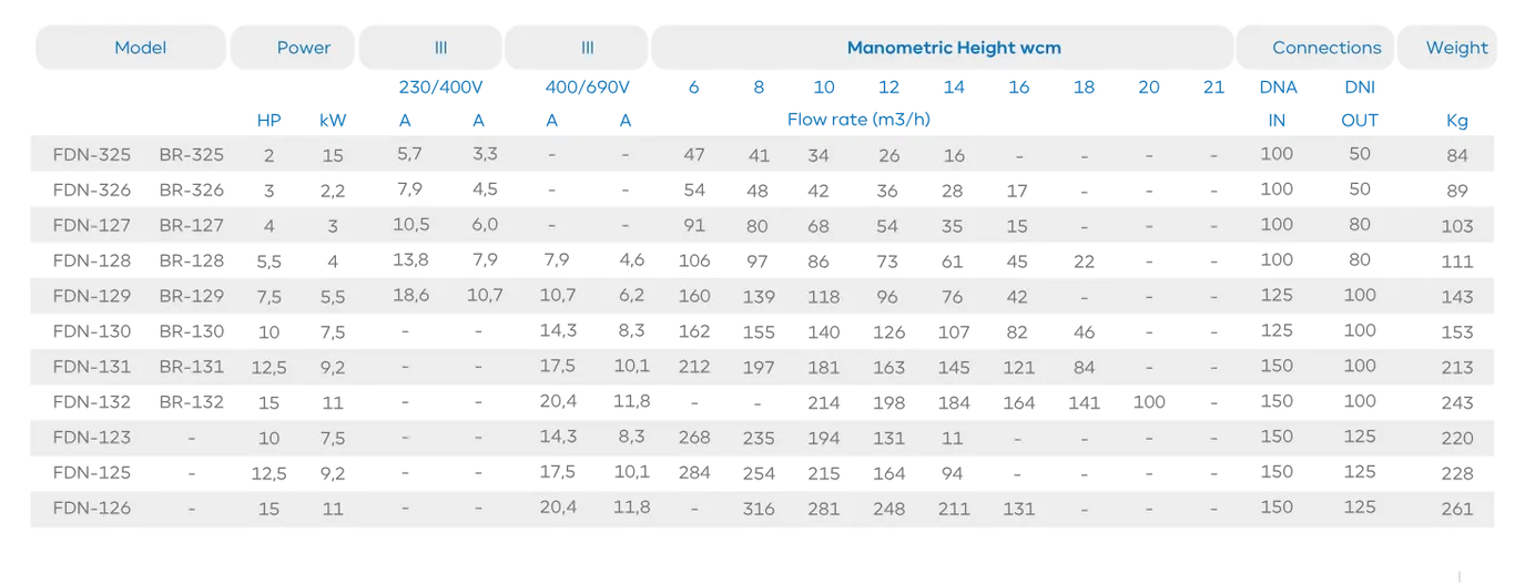 - High efficiency motor class IE3 according to regulation ECn˚ 640/2009