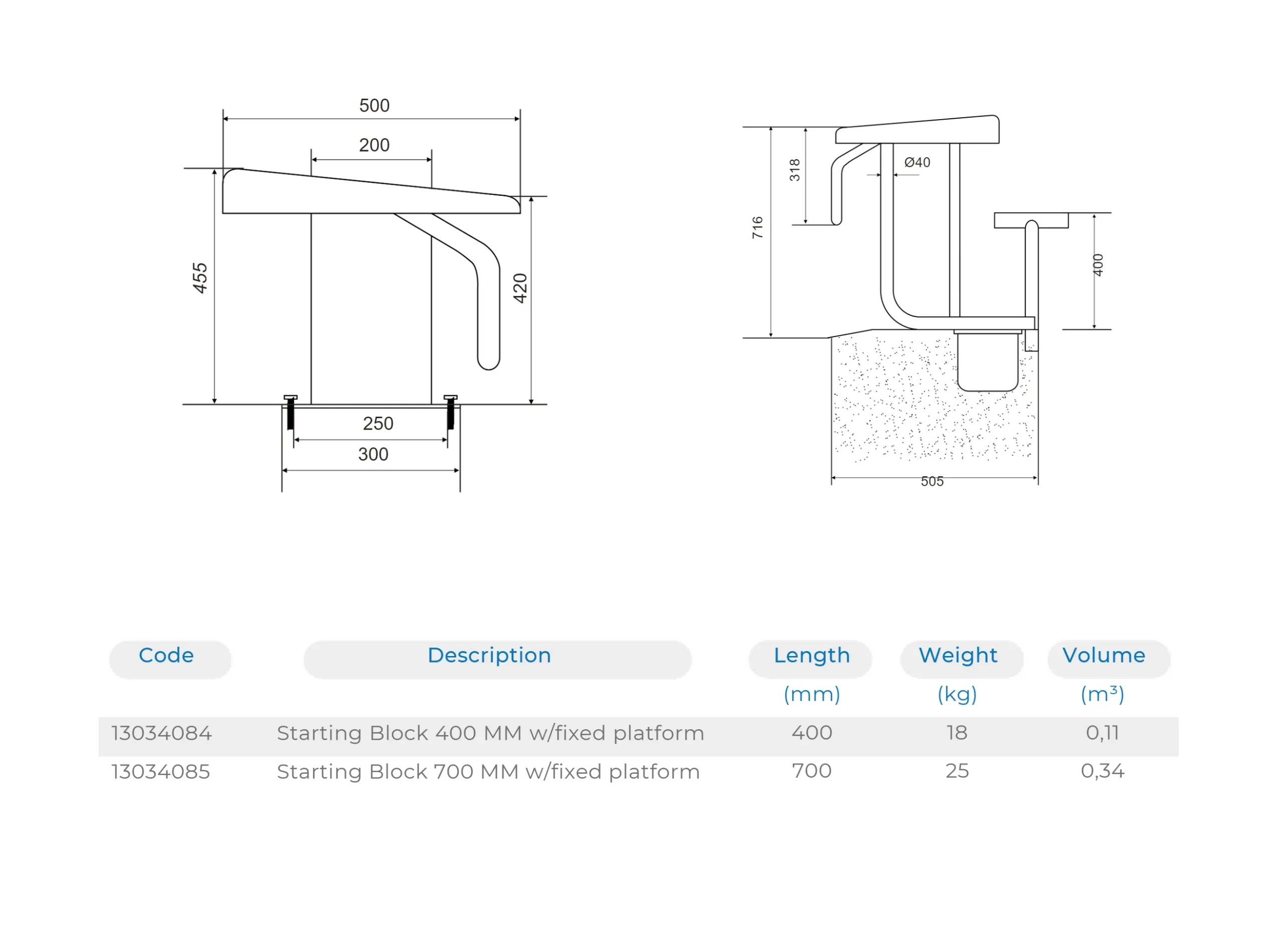 Made of stainless steel AISI 316 with fixed platform 500 x 500 mm in polyester and fibreglass with non-slip finish. Tube anchoring in stainless steel AISI 316 not included. Number sequence to be requested separately. Available in two heights – 400 and 700 mm