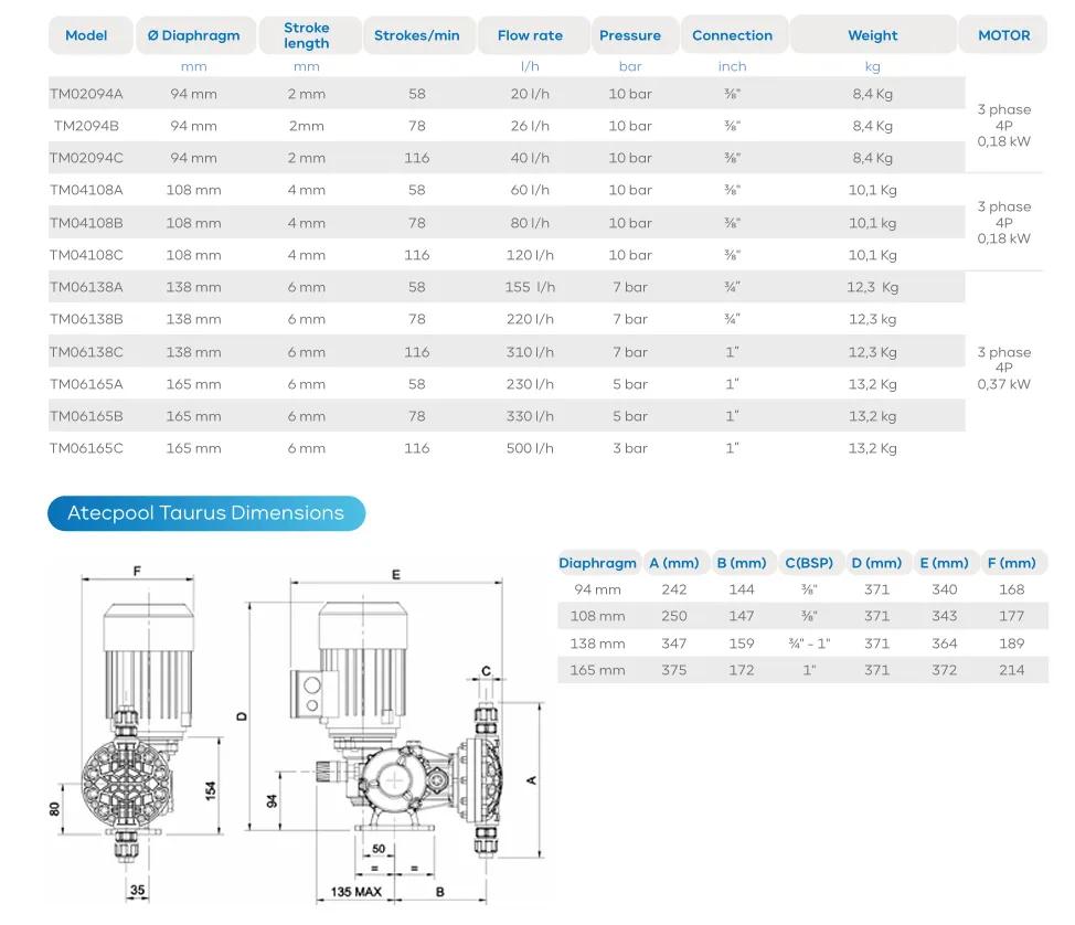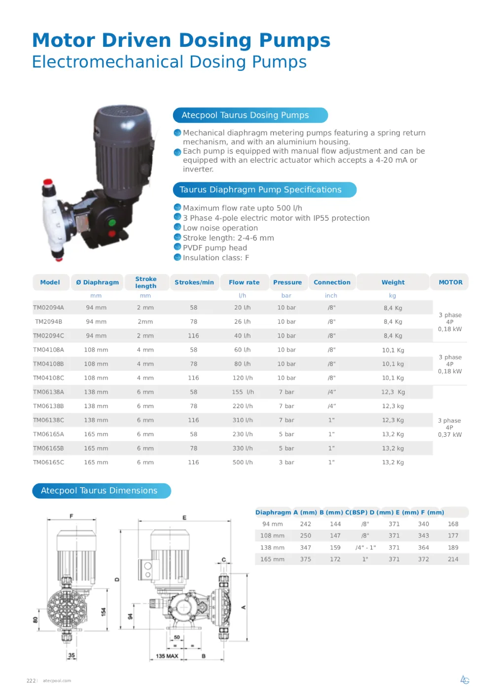 Mechanical diaphragm metering pumps featuring a spring return mechanism, and with an aluminium housing.
