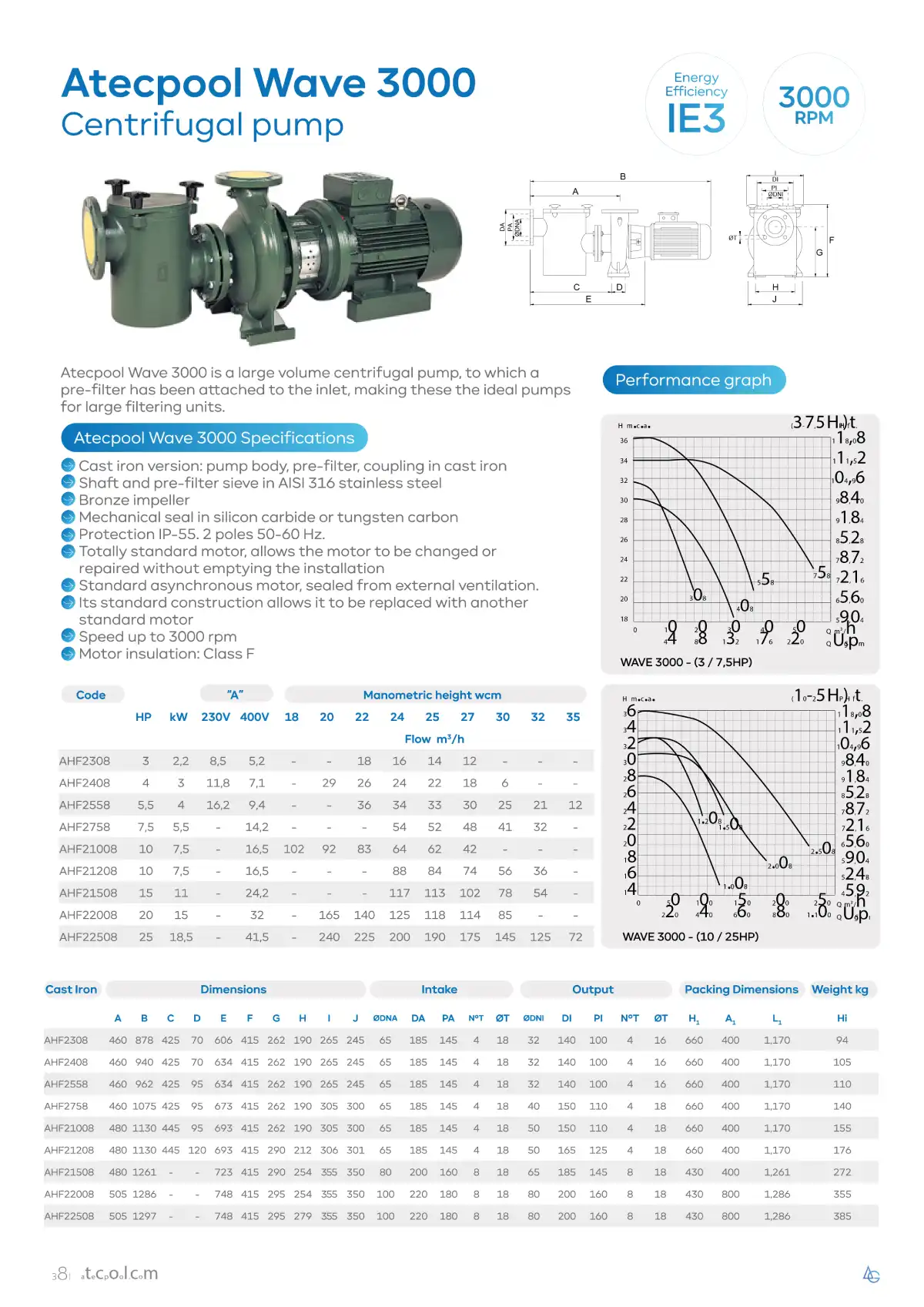Atecpool Wave 3000 is a large volume centrifugal pump, to which a pre-filter has been attached to the inlet, making these the ideal pumps for large filtering units.