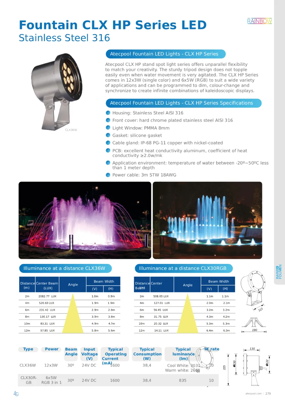 Atecpool Fountain LED Lights – CLX HP Series Specifications