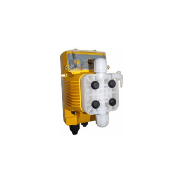 PVDF pump head suitable for chemical used in waste water treatment and pools.