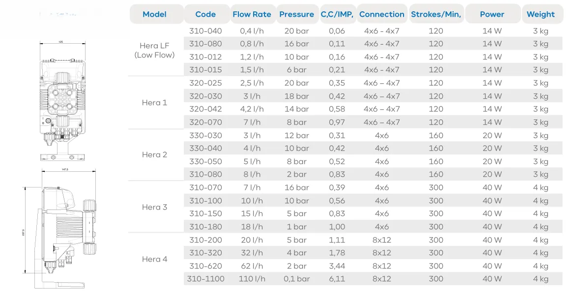 Adjustable flow rate by buttons on the front panel.Power-on and level alarms LED.