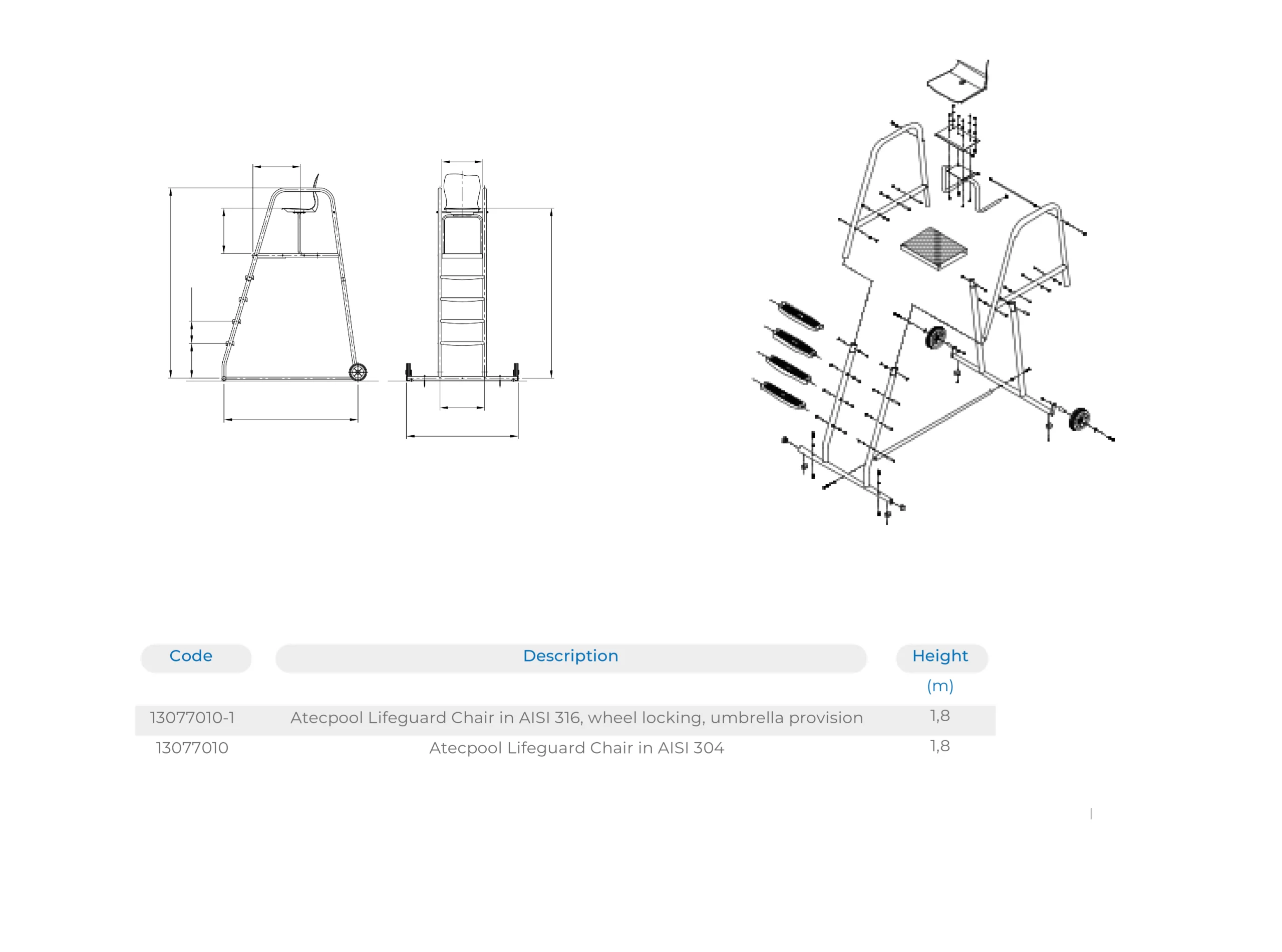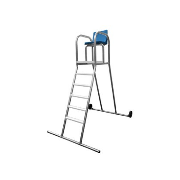 Made of stainless steel AISI 316, Ø43 mm pipe. Wheeled base with steps, platform and chair made of plastic. Lifeguard Chair equipped with wheel locking mechanism and umbrella slot as optional additions. AISI 304 is also available.