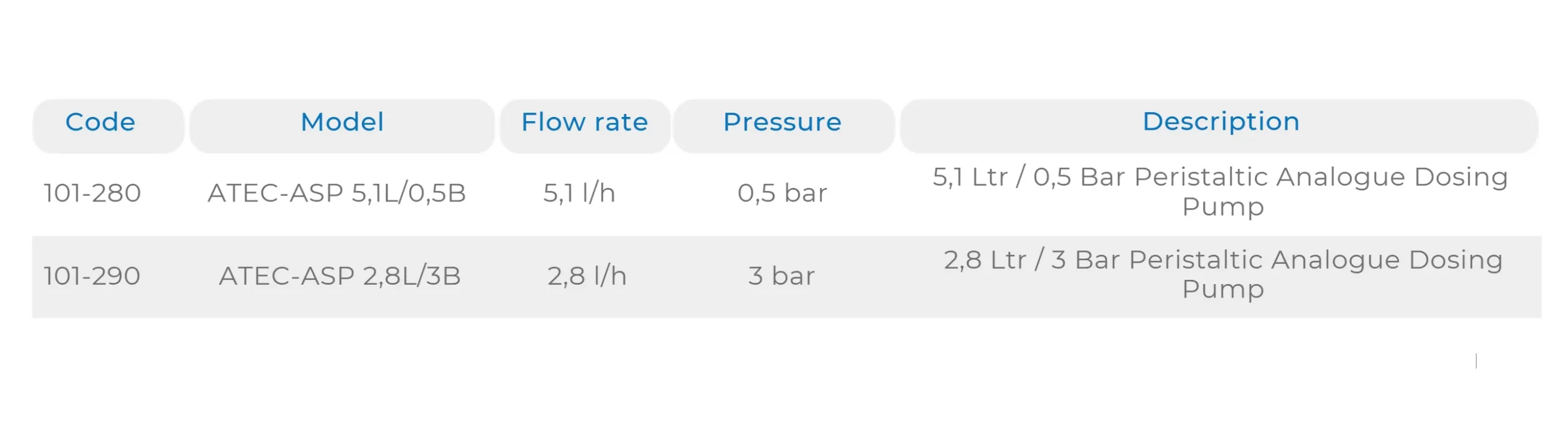 Adjustable Flow Rate Rapid Button PP- IP 65 Chemical Resistant Body On-Off Button Long-lasting roller system Chemical Discharge Tip ph-Chlorine dosing Detergent dosing Rinsing aid dosing Easy mount and dismount via back lid slider