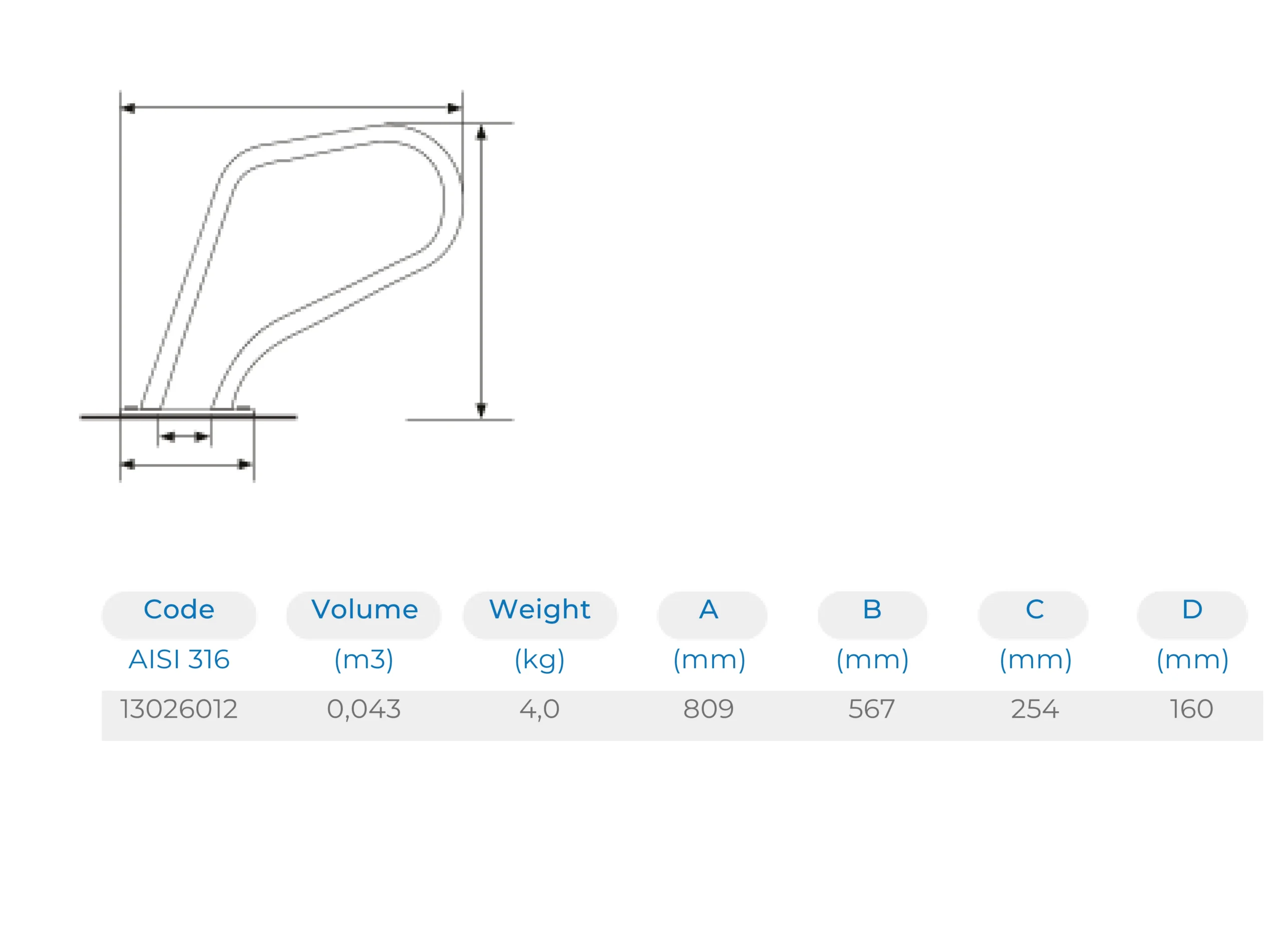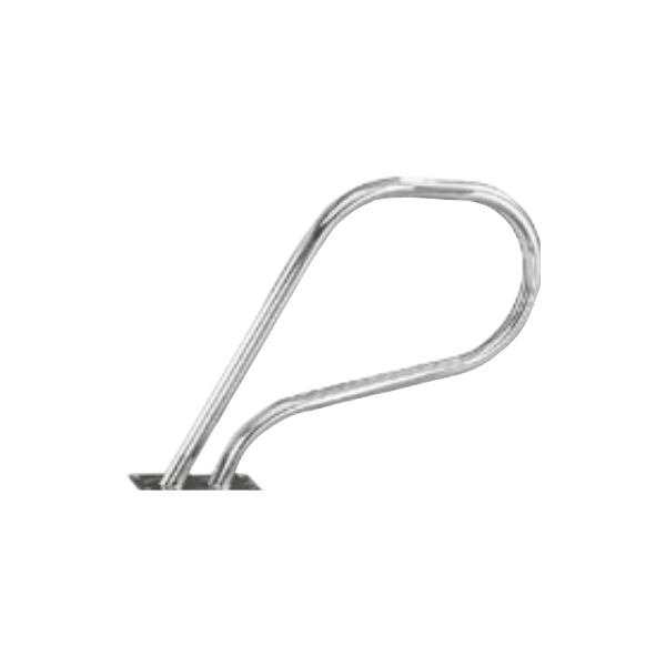 Polished AISI 316 Ø42 mm pipe bend for SPA exit access. Supplied with welded flange for fixing outside the water.