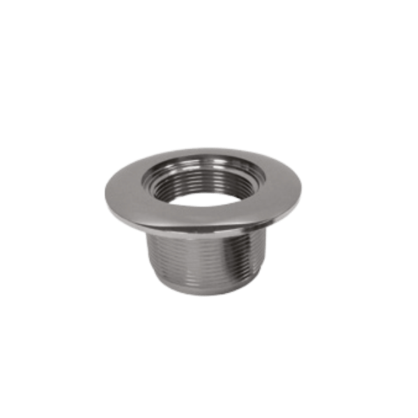 Suction inlet in polished stainless steel AISI 316 with outer thread 2”. Length 40 mm, supplied with threaded cover. AISI 316L upon request.