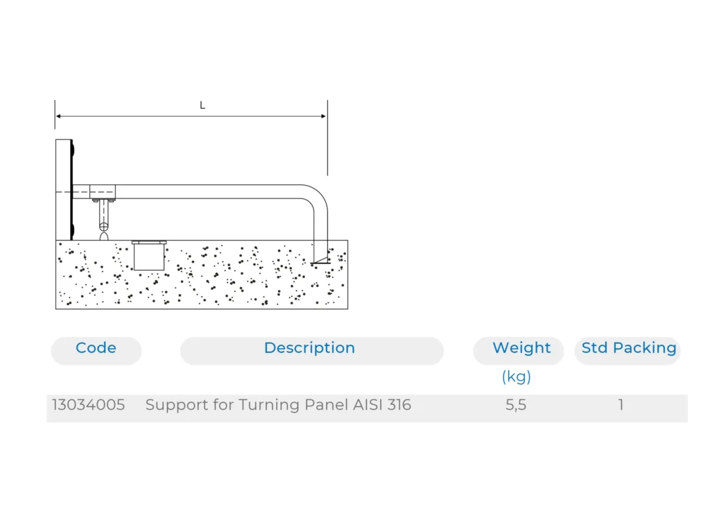 Support for Turning panel in S.S. AISI 316. Custom length (L) based on request. 2 units for each turning panel.