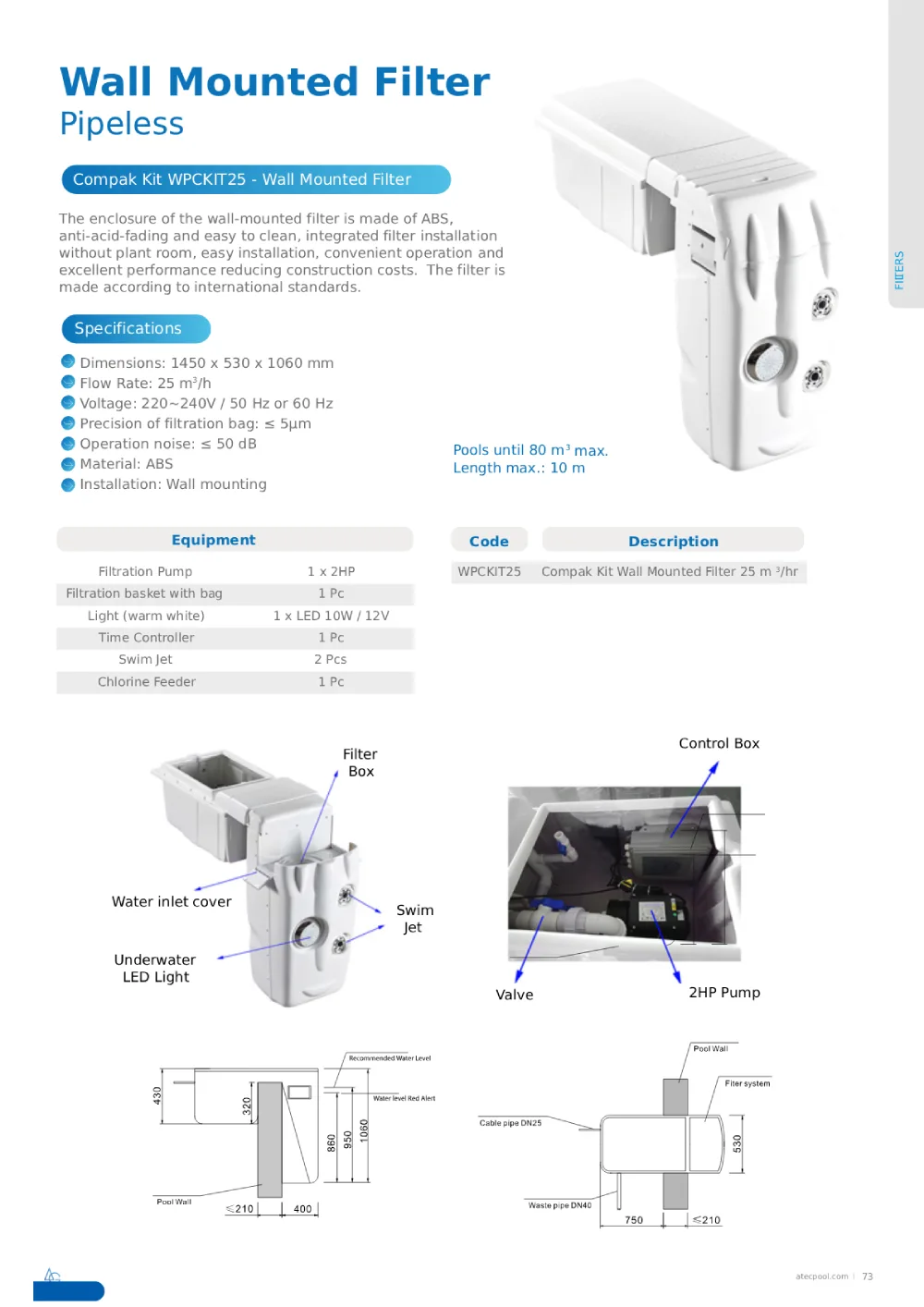 The enclosure of the wall-mounted filter is made of ABS, anti-acid-fading and easy to clean, integrated filter installation without a plant room, easy installation, convenient operation, and excellent performance, reducing construction costs. The filter is made according to international standards.
