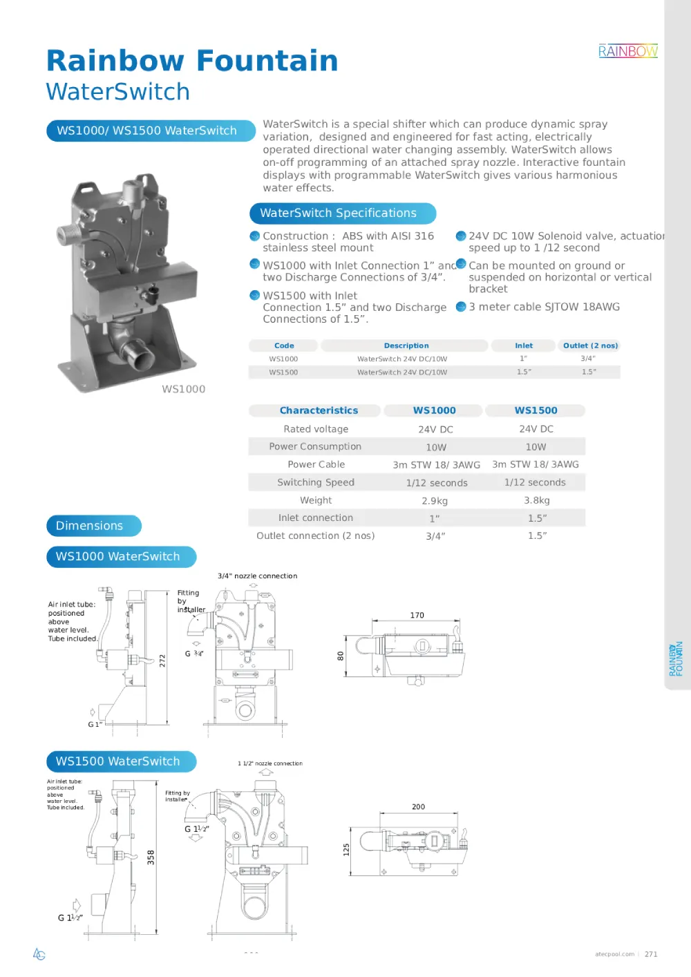 - WS1000 with Inlet Connection 1” and two Discharge Connections of 3/4”.
